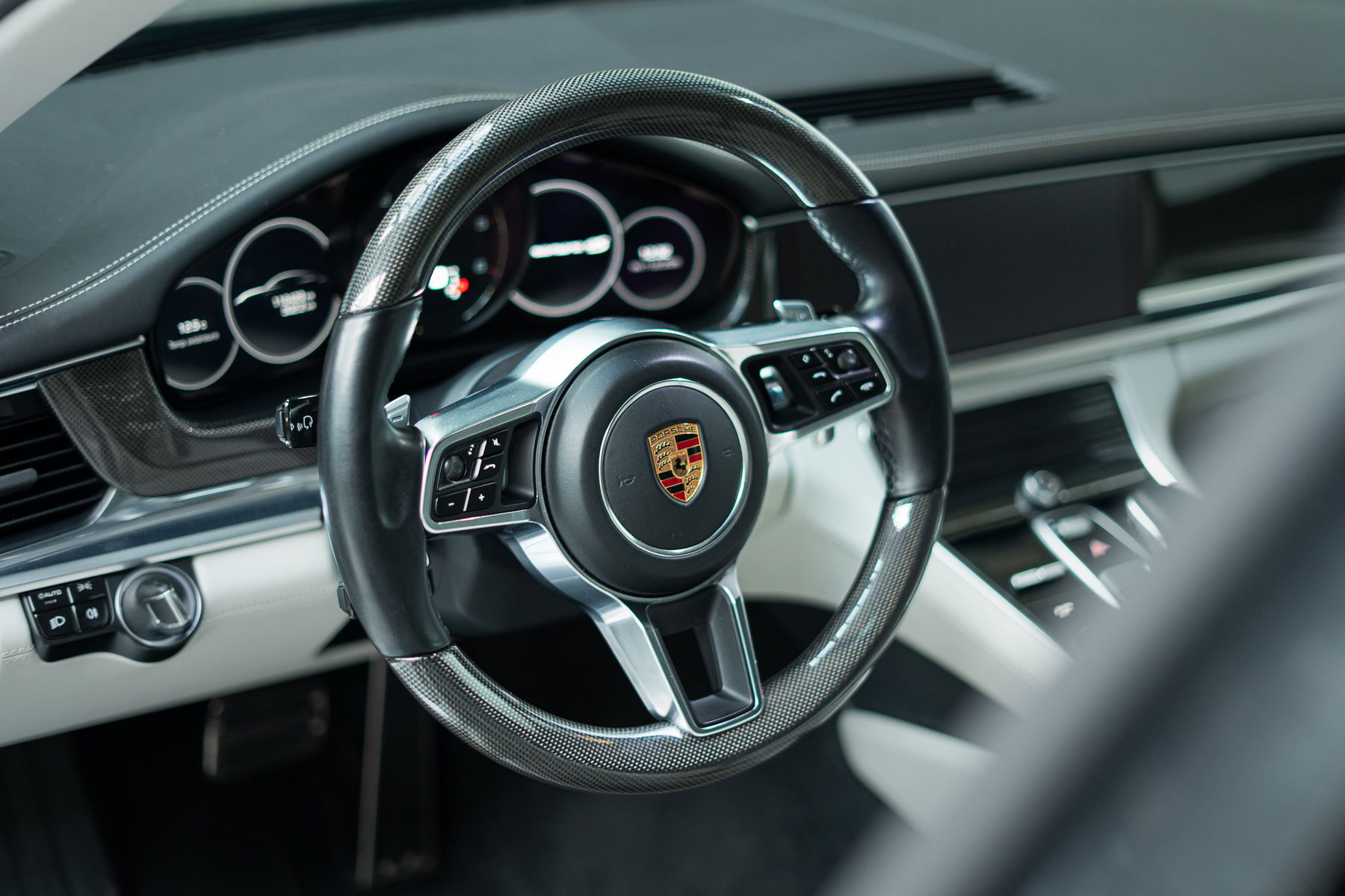 Deze Panamera 4S Diesel is uitzonderlijk goed uitgerust en beschikt over een bijzonder uitgebreide configuratie. Belangrijke opties zijn onder meer het Sport Chrono-pakket, adaptieve luchtvering met PASM en rijhoogteverstelling, verwarmde voorstoelen met massagefunctie en verwarmde achterstoelen. Het volledig met leer beklede interieur (dashboard, middenconsole en tweekleurige deurpanelen) wordt verder verfraaid door carbon decoratieve inleg, het aluminium interieurpakket, Porsche-hoofdsteunen met logo en het BOSE Surround Sound-audiosysteem. Het verwarmde multifunctionele carbonstuurwiel maakt deze verfijnde en sportieve sfeer compleet.